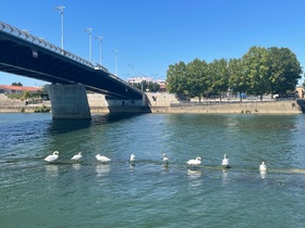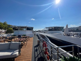 Ist die erste Reise unter Phoenix, zwei Kreuzfahrtleiterinnen an Bord. Ansonsten kaum Hinweise auf Phoenix, Personal trägt Scylla oder VIVA-Kleidung. Niemand trägt mehr Maske, auch das Personal nicht. Es gibt morgens wieder Buffet. Schiff ist so gut wie voll. Sind sehr gespannt auf die Tage, gleich Ankunft in Tournus.