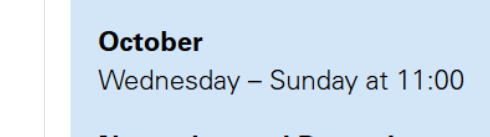 Mir werden hier für Oktober täglich Bootstouren angezeigt. Für Montag 6.10.zum Beispiel ist es buchbar für 840 NOK, Dauer 3 bis 3,5 Std.