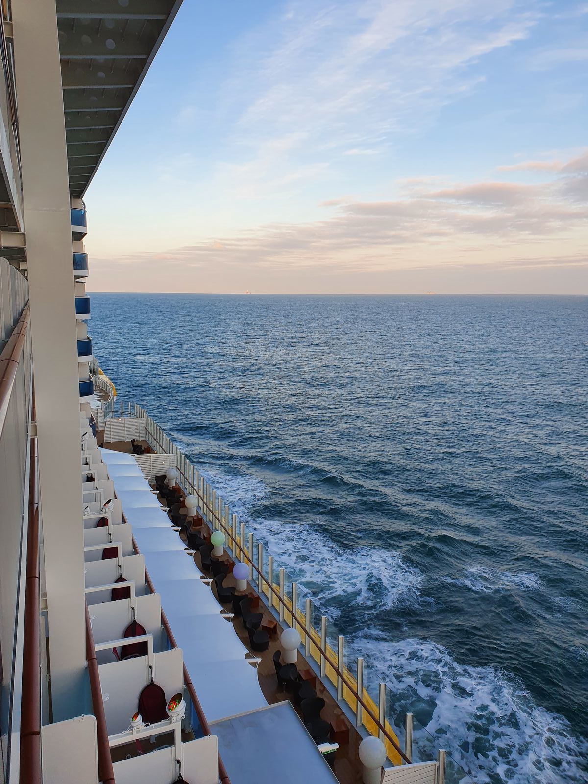 Gegenüber der Kabine liegt allerdings der Raum für das Housekeeping, weshalb es vom späten Vormittag bis Nachmittag doch recht laut ist. Die Türen knallen regelmäßig zu und die Wäschewagen schrammen an den Wänden entlang.
