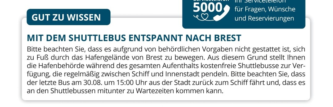 In Bilbao, Gijon und Brest gab es Shuttle.