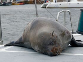 Unmittelbar danach näherte sich eine( wohl zu Boot gehörige) Robbe uns auf dem Boot von hinten