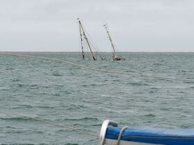 Dann ging es los aus Meer zu den Robbenbänken vorbei an einem gesunkenen Schiff