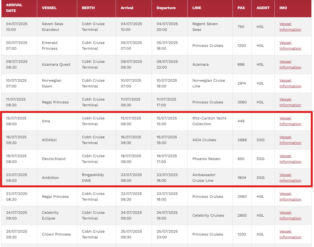Danke, ich hatte nur diese Seite https://hafeninfo.de/hafen/irland/cobh/ da taucht die Sol nicht mehr auf.