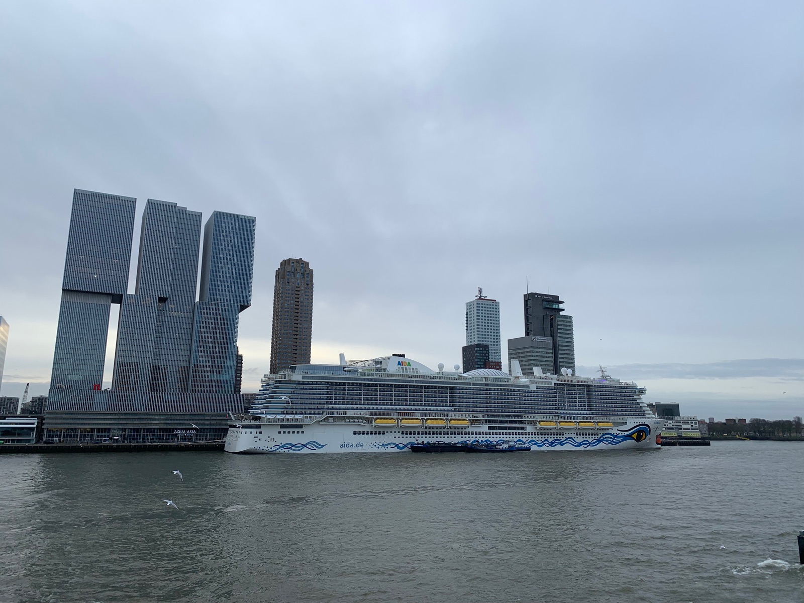 Montag Rotterdam. Es ist bewölkt aber bis Mittag war es trocken. Wir sind gleich nach dem Frühstück los und haben zu Fuss eine Runde gedreht.
