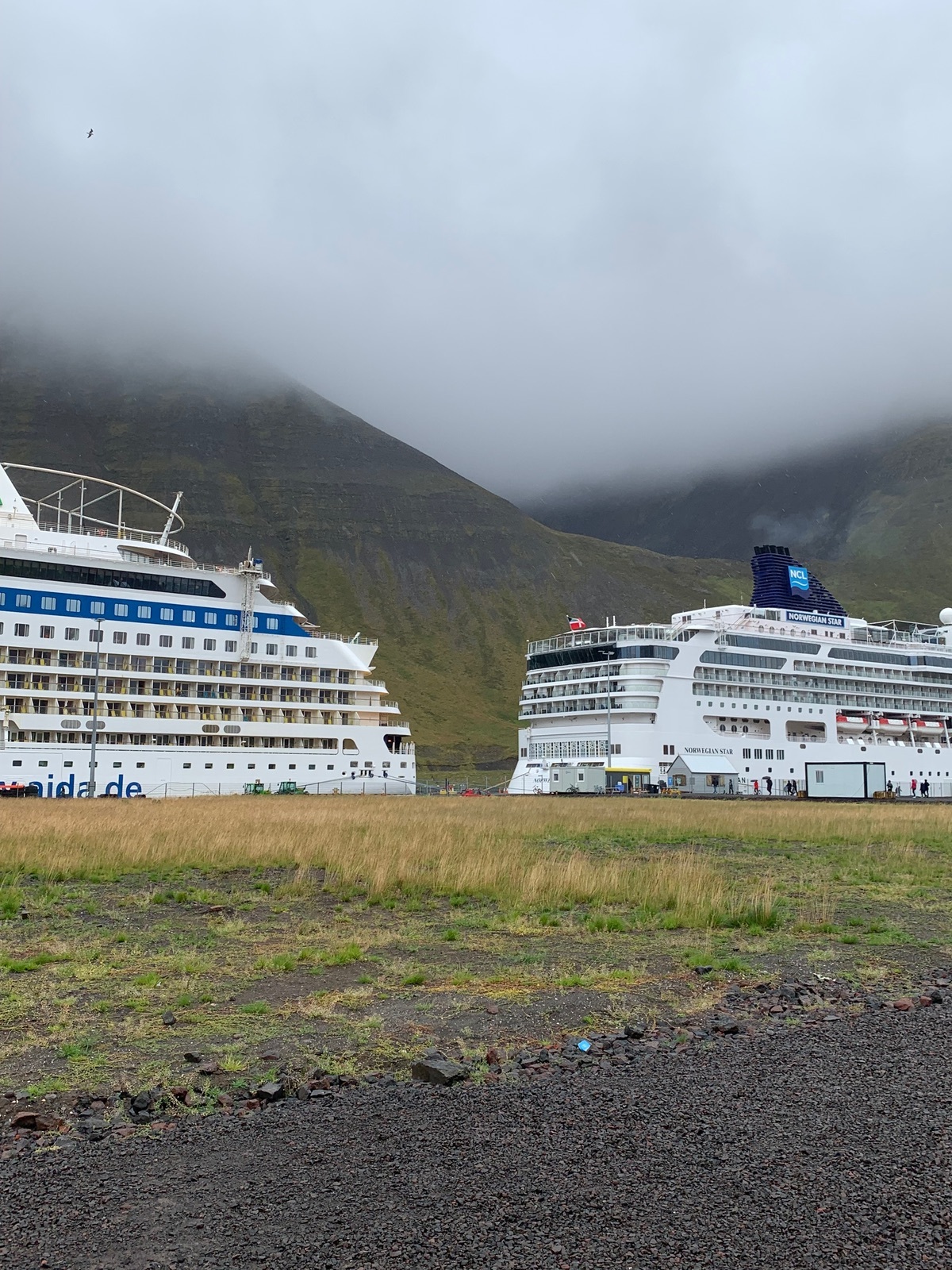 Hallo aus Isafjördur. Lt.Info gestern sollten wir heute tendern. Aber welch angenehme Überraschung, der Lotse hat uns an den Anleger gebracht. Po an Po mit der Norwegian Star.