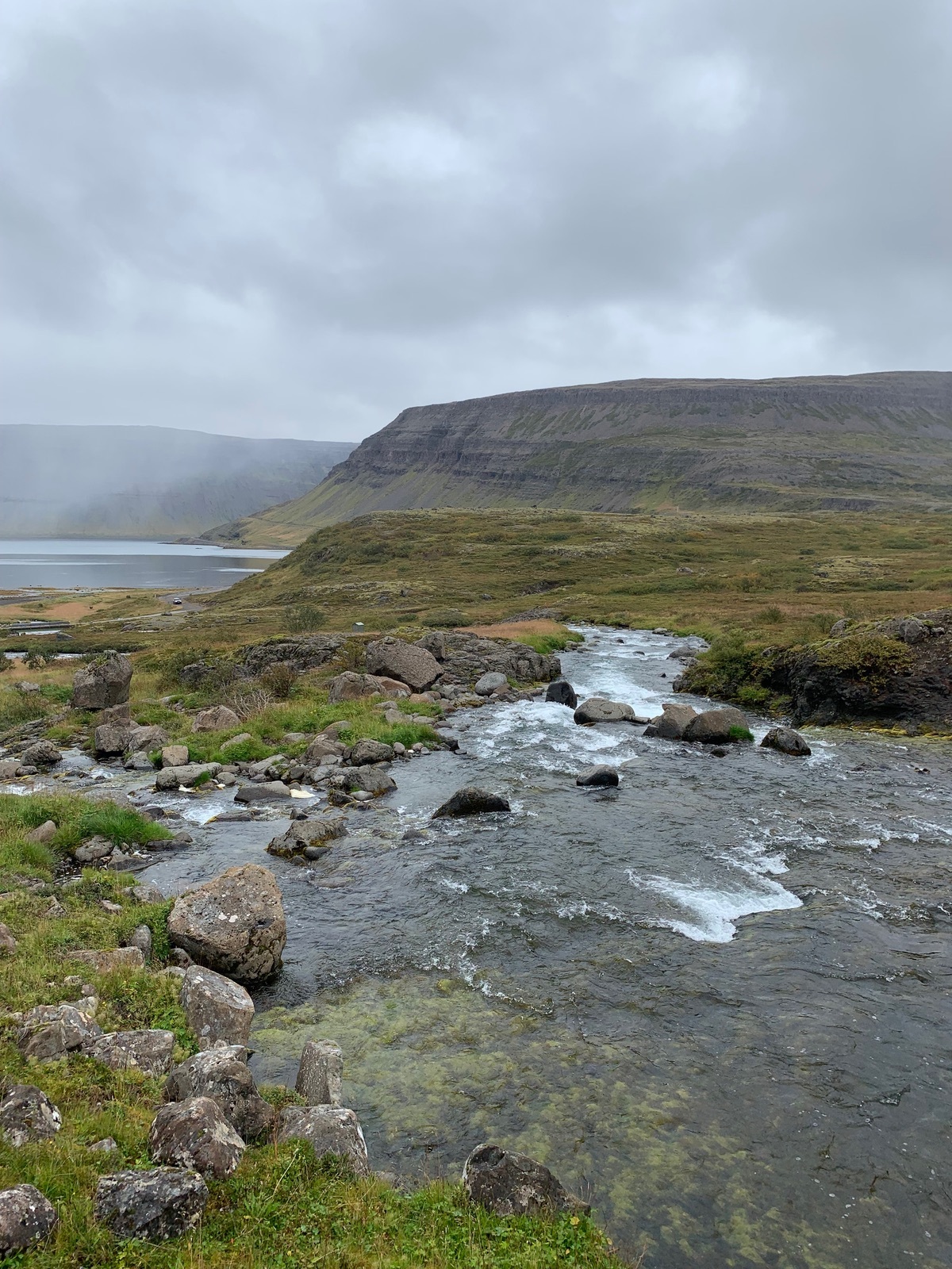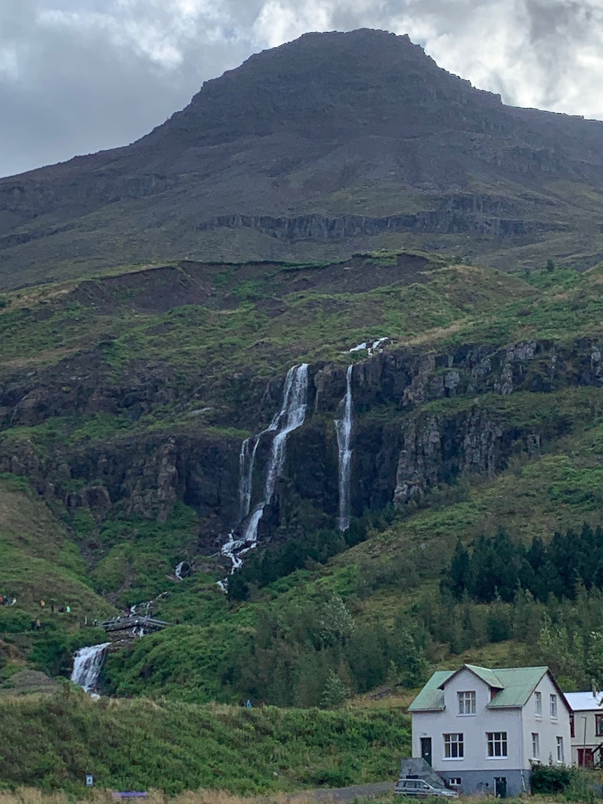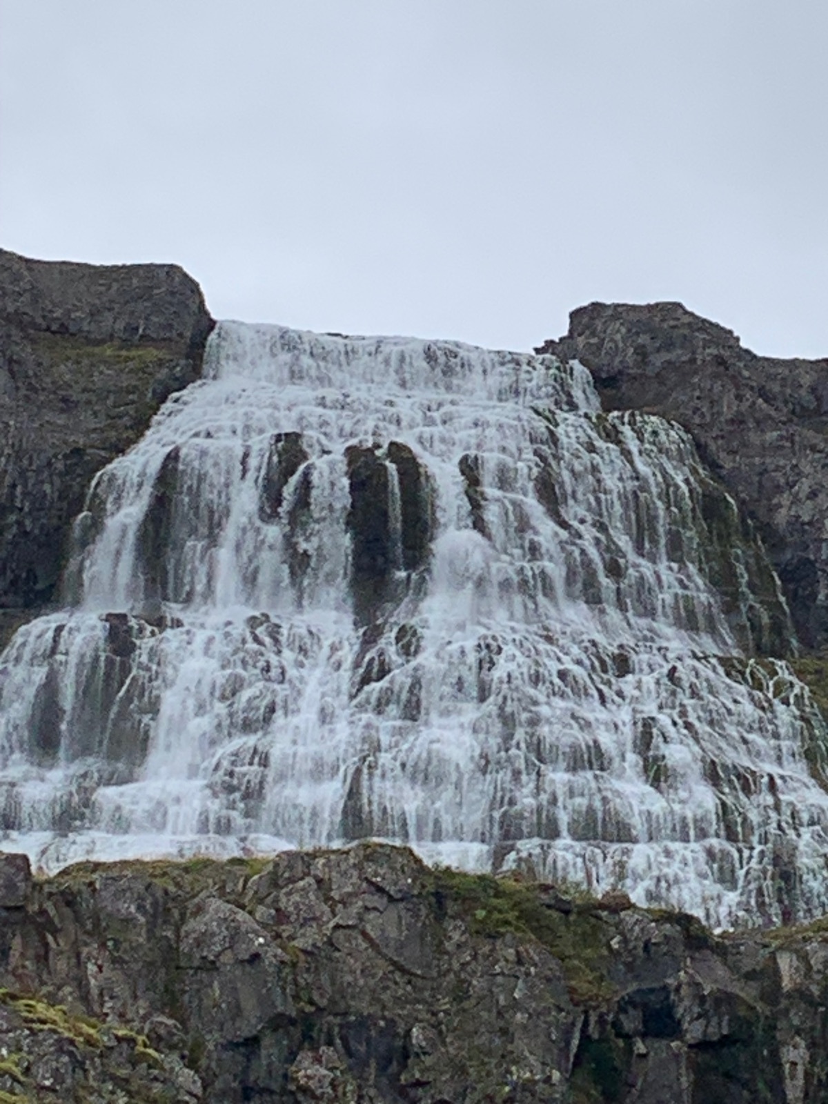Die Berge lagen immer im Nebel, wirkte alles sehr mystisch. Weiter dann zum Dynjandi Wasserfall in die andere Richtung, etwa eine Stunde Fahrzeit.