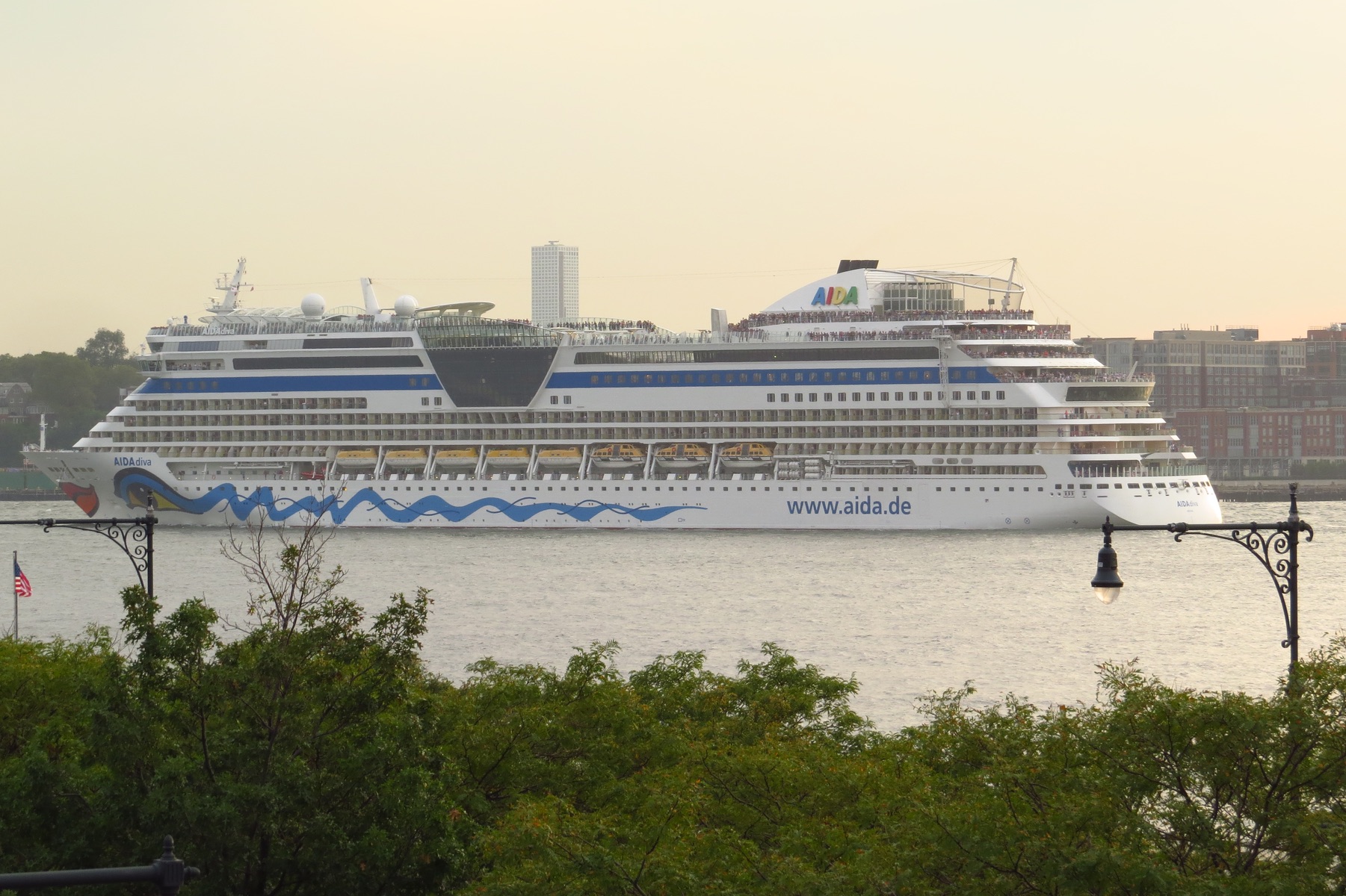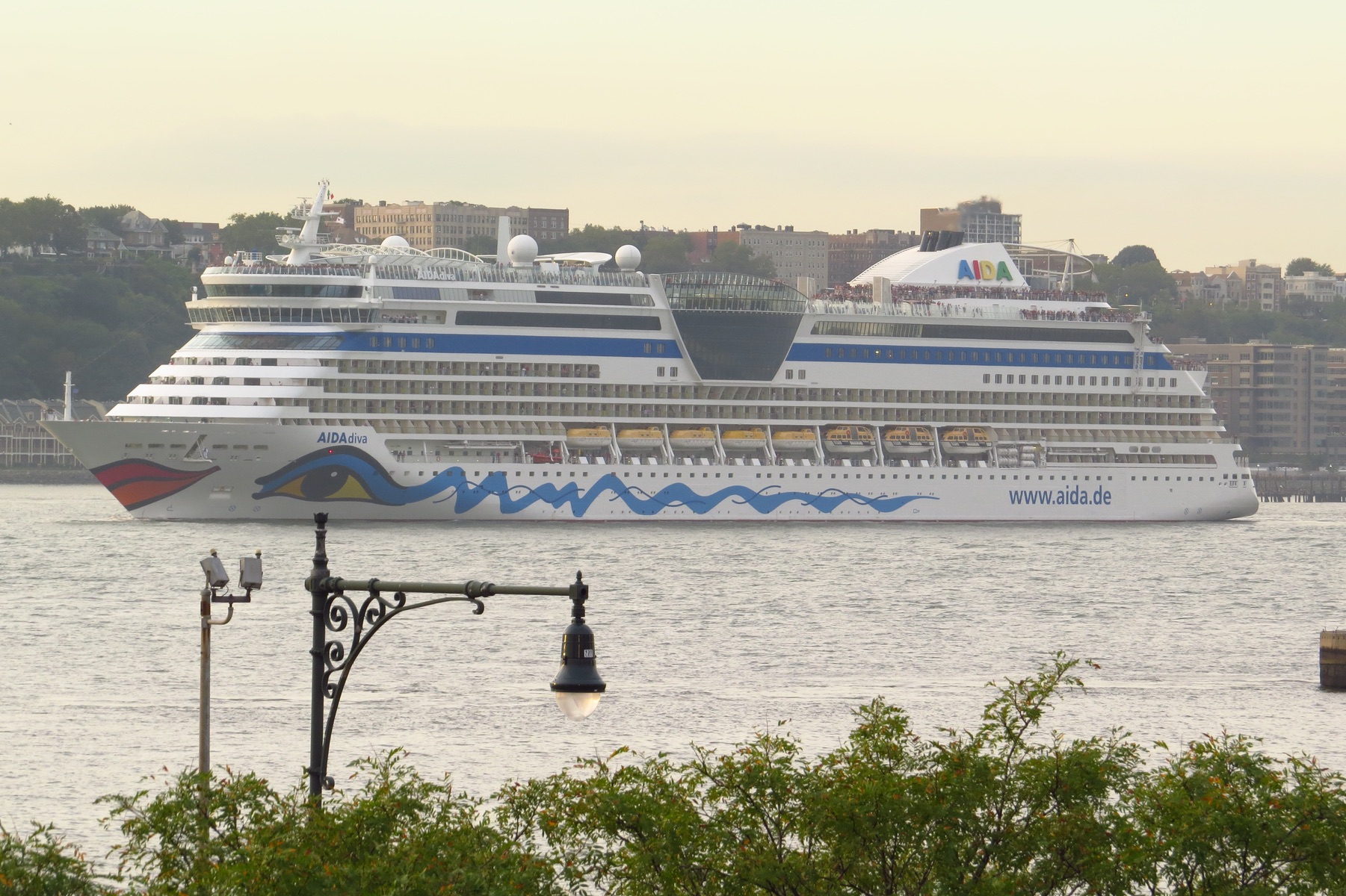 Da hatte ich ein tolles Erlebnis im Sept. 2016. Ich saß auf der Bank mit einem wunderbaren Ausblick auf der High Line Park und konnte die AIDAdiva zum Auslaufen winken ....
