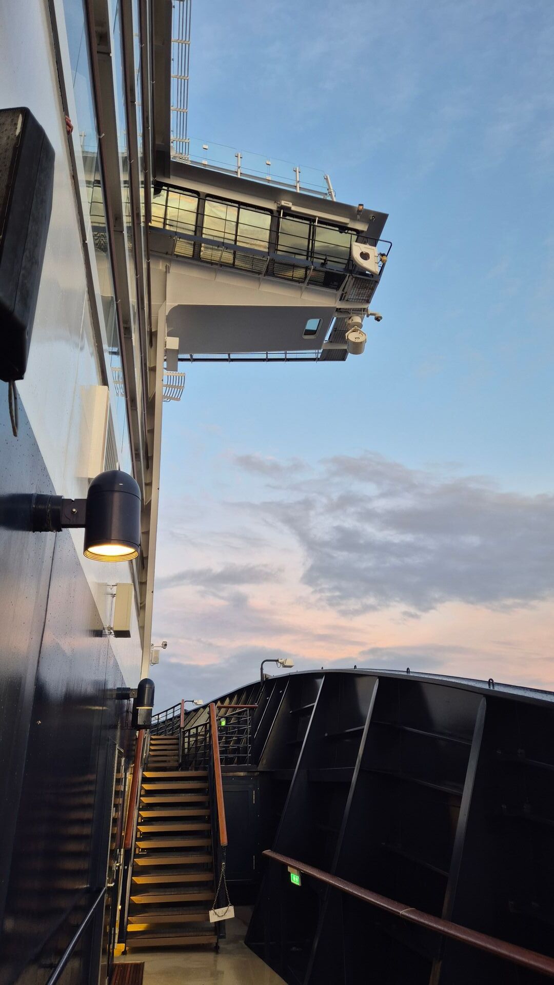 Viel erwähnenswerter ist doch, dass ich es vor unserer Reservierung im Esszimmer (das Gourmetpaket Plus lässt grüßen) bis in den Fitnessbereich auf Deck 15 und in die Sauna auf Deck 12 geschafft habe; jetzt will ich auch mal gelobt werden. Während meiner Zeit auf dem Crosstrainer konnte ich gut die Menschen auf den Balkonen der Harmony beobachten. Also: wenn ich zuhause jeden Tag solche Schiffe hätte, würde ich öfter zum Sport gehen. Da braucht es keine Musik, ist auch so interessant genug.