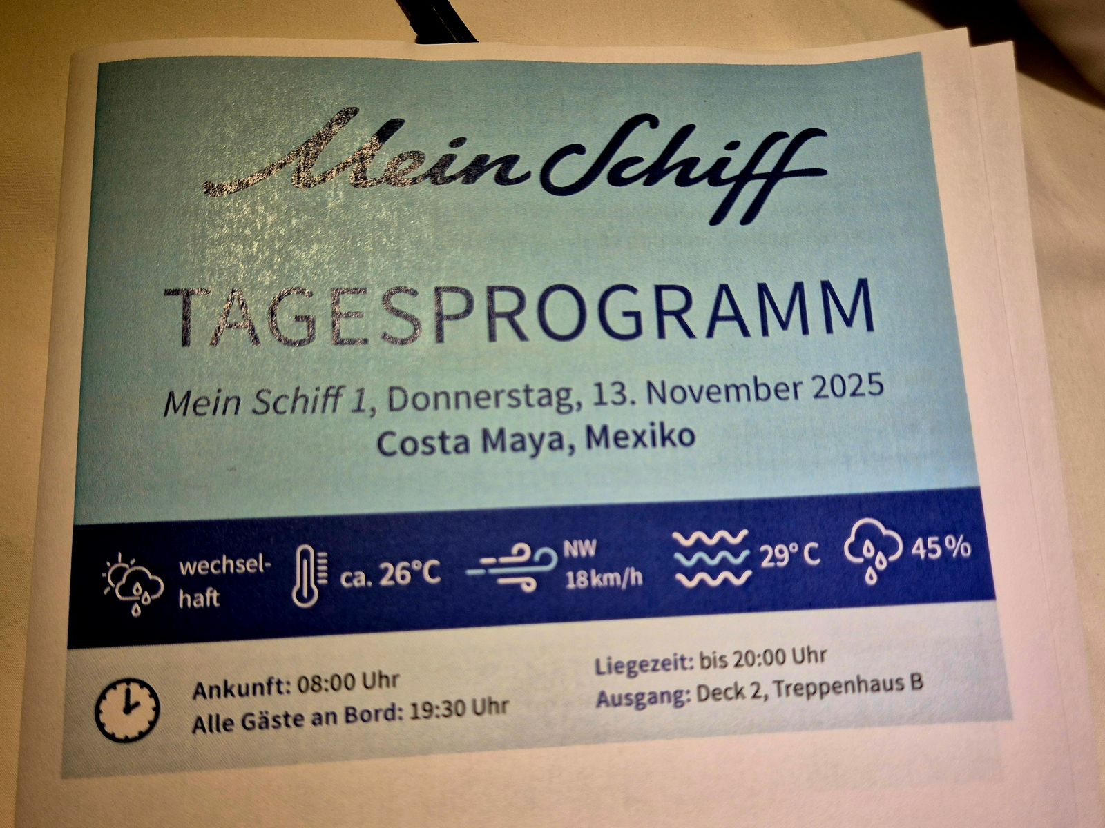Mein Schiff 1 - Best of Mittelamerika, Tag 4, 12.11.2025, Costa Maya, Mexiko