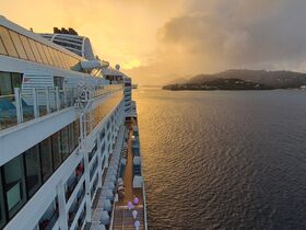 Aber von vorne: mittlerweile kennt man es vermutlich aus meinen Erfahrungen: ich bin immer früh wach und auch heute saß ich um 5 Uhr auf der Veranda und schaute auf die Heckwellle. Das hat wirklich was beruhigendes und man kann seine Gedanken in die Ferne schweifen lassen. Nebenbei durften wir auch die Celebrity Eclipse beobachten, die uns erst ein und kurz vorm Ziel überholte.