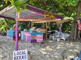 Die Stunden am Strand bis 14 Uhr waren reine Erholung von der Anreise. Bestes Wetter, zwei Bier oder einen Rum Punsch für 5 USD, warmes Wasser (leider mit kleinen, aber ungefährlichen Quallen), Sonne satt, 10 Euro pro Liege und lustige Begleitung.