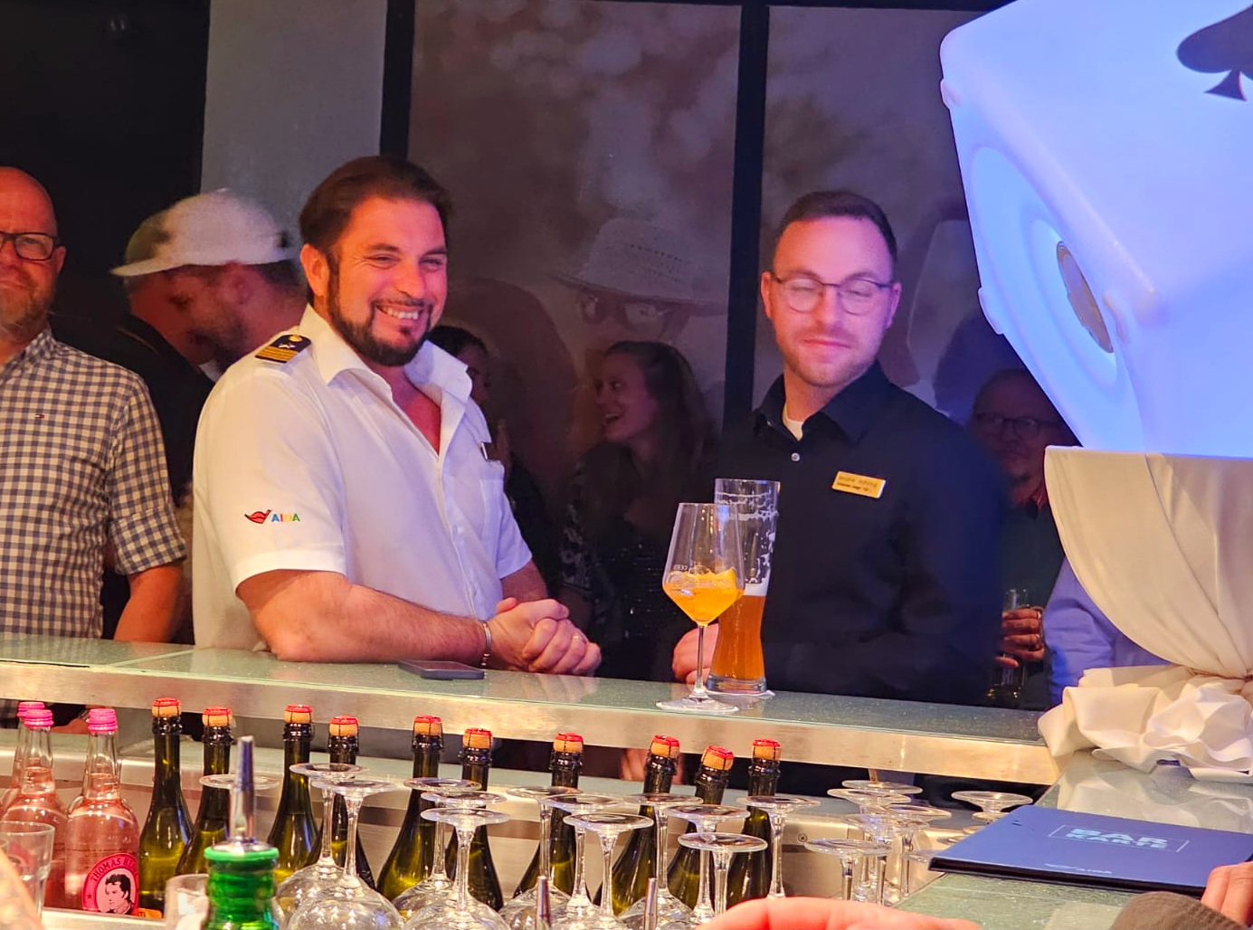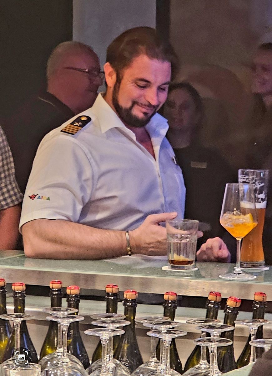 Er ist der erste AIDA Kapitän, den ich nun hatte, der einen Abend lang von ca. 22 Uhr bis Mitternacht in der Anytime war (Black-/Whiteparty). Sich mit Gästen unterhalten und teilweise mit ihnen getanzt hat. Auch ich habe die Gunst der Stunde genutzt und mich auf englisch mit ihm unterhalten. Er ist wirklich sehr sympathisch und wanderte direkt in die TOP 5 meiner Favoriten!