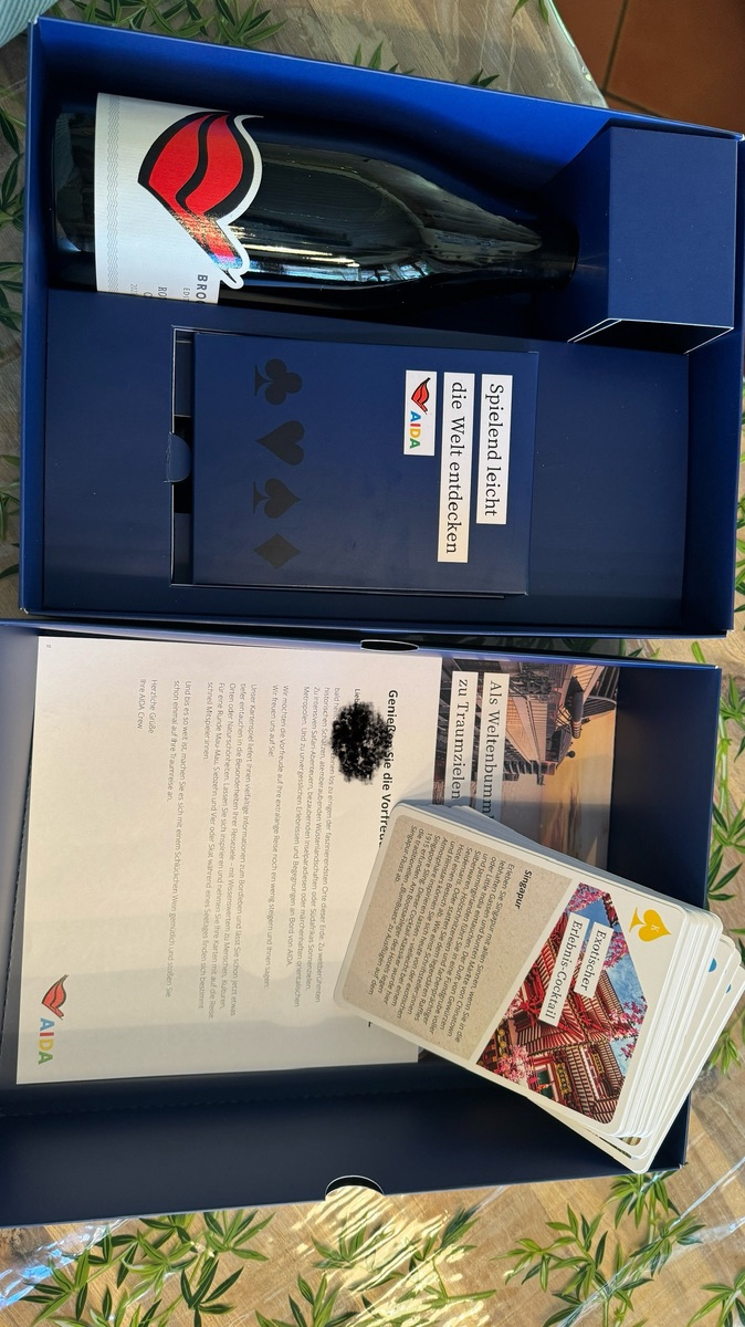 Wenn es bei uns gesundheitlich wieder möglich ist, werden wir die Flasche anläßlich der nächsten Aida-Buchung öffnen.