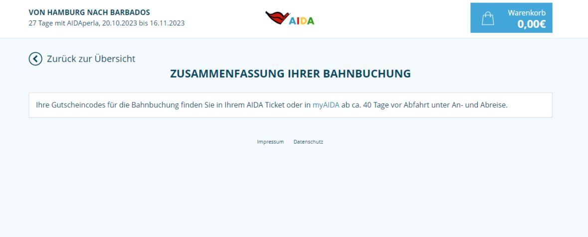 AIDA stellt die Vouchers für fie Bahntickets erst 2 Monate vor Abfahrt ein.