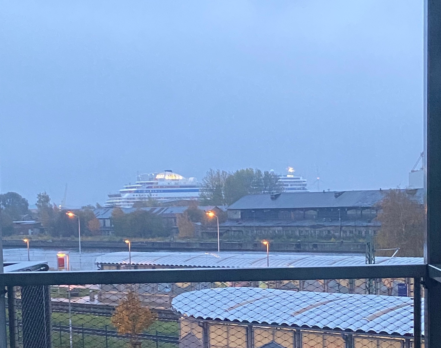 Wir haben mollig eingepackt im Bett gelegen und ich habe die Aidamar auf Vesselfinder beobachtet. Auf einmal ist mir klar geworden, die fährt ja am Pier 8 vorbei und ist genau vor unserem Hotel. So schnell hat wahrscheinlich hier noch niemand die Gardinen aufgezogen 😬 Wir sind im Dock Inn Warnemünde.