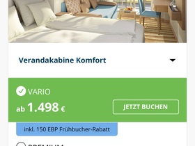 Aktuell kostet die Reise 1498,- Euro im Vario- und 2590,- Euro im Premium-Tarif. Wir hatten im Vario-Tarif gebucht. Wir würden die Reise für 1200,- Euro abgeben und übernehmen selbstverständlich die Umschreibegebühren.