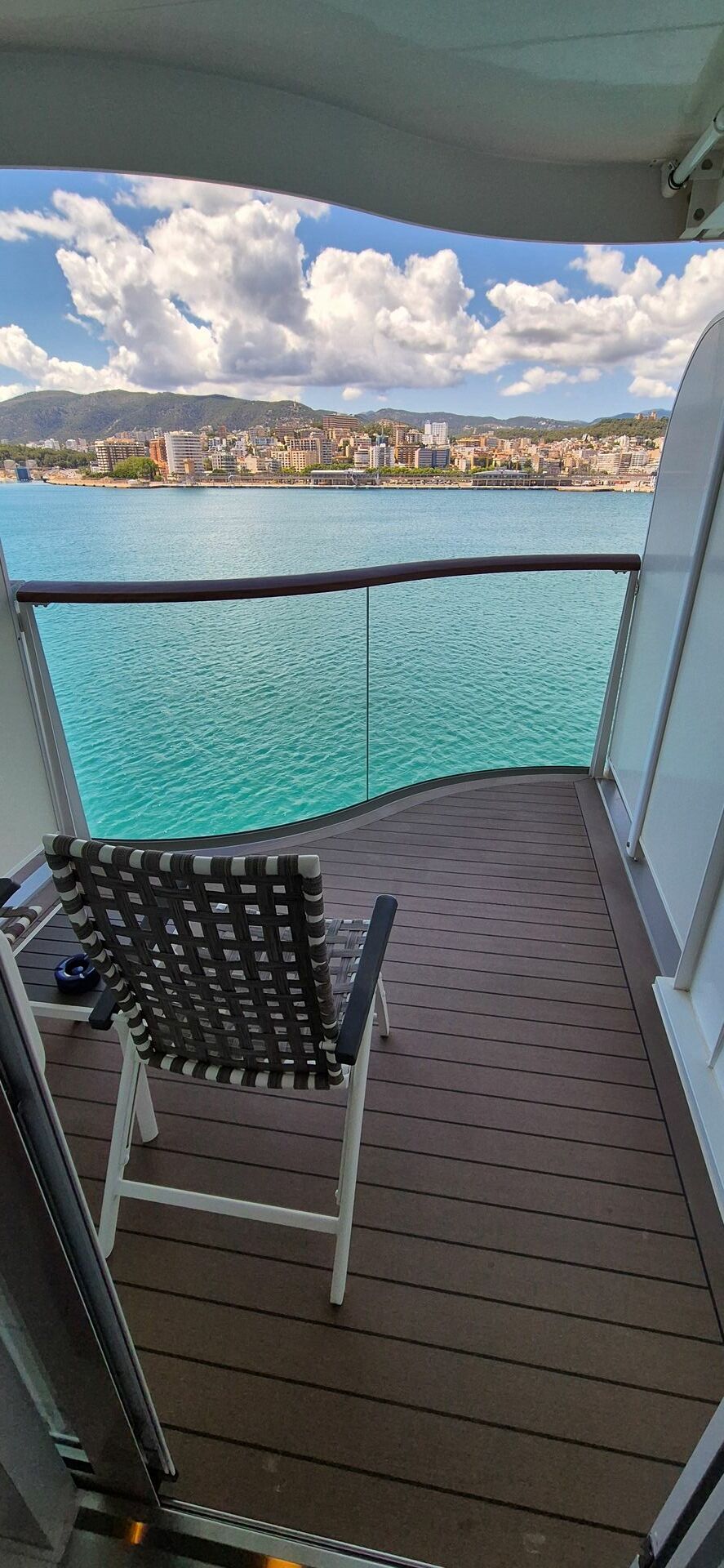 Man ist vom hinteren Aufzug fast direkt in die Kabine gefallen. Absolut ruhig, ohne irgendwelche Geräusche und dazu noch mit größerem Balkon, weil direkt in der Ausbuchtung mit tollem Blick in alle Richtungen.