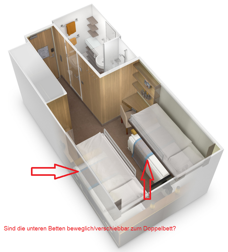 In den verschiedenen Kabinenthreads hatte ich schon nachgesehen. Hier geht es dann immer um eine ganz bestimmte Nummer. Das Thema Betten zusammenschieben wird dort kaum bis gar nicht Thematisiert.