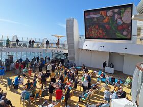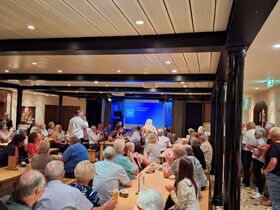 Heute Seetag mit 11 Grad. AidaWalk ein letztes Mal erledigt. War ganz schön kalt. Anschließend ins Brauhaus zur zünftigen Party mit LKW und Bratkartoffeln. Viel los und Stimmung war keine. Wir verabschieden uns schonmal. Wer weiß, ob man sich bei dem Trubel heute nochmal sieht. Heute Abend gibt's ja große Farewell Essen und Party. Auf Aida sehen.