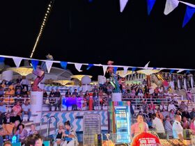 Erst mal Aida Walk erledigt. Dann Pooldeck und Deck 5. Uhr umstellen und dann den Gypsi Rafael de Alcala beim warmen aber windingem Wetter erlebt. Und wieder tobt das Pooldeck.
