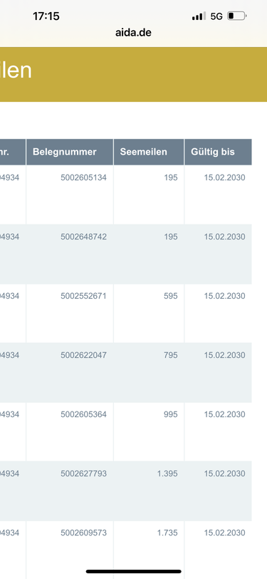 Die sichtbaren SM wurden für Einkäufe (Ausflüge) über MyAida gewährt