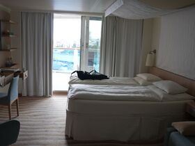 Nur einen Abend war die Lautstärke echt schlimm in der Kabine, aber.... auf dem Balkon hat man die ganze Zeit ein leises Gesäusel von mir nicht angenehmer Musik. Hätte ich vieleicht ignorieren können, wenn das Problem mit der Aussicht nicht gewesen wäre....
