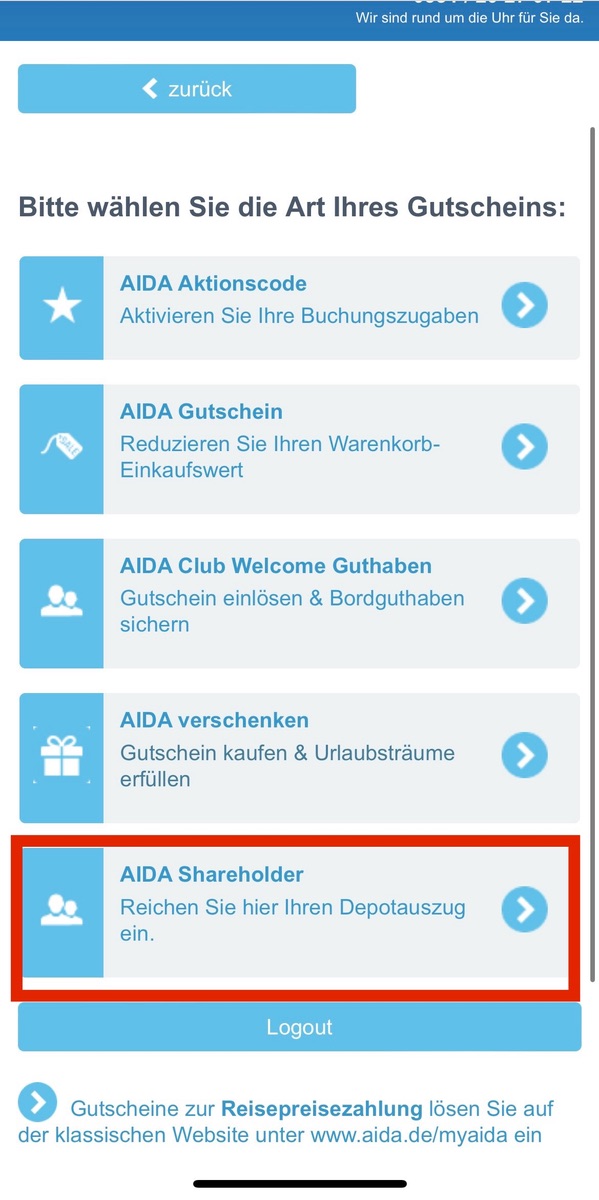 Nur ein Hinweis: Beim Mutter (Carnival) aber normal, wenn man die englischsprachige Foren liest. In den Shareholder benefits steht ja auch nichts von 5-28 Tage drin. Dort steht sogar „spätestens 4 Wochen vor Abfahrt“ drin und nicht frühestens. (Ist nun mal ein AIDA eigene Regel. Bisher für uns i.O.)