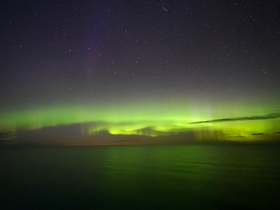 Weitere Eckdaten: 14mm Objektiv. Belichtung etwa 5“ (auf Stativ) bei ISO 4000. Mit den Augen war die Erscheinung lediglich ein leichter heller Bogen über dem Horizont.
