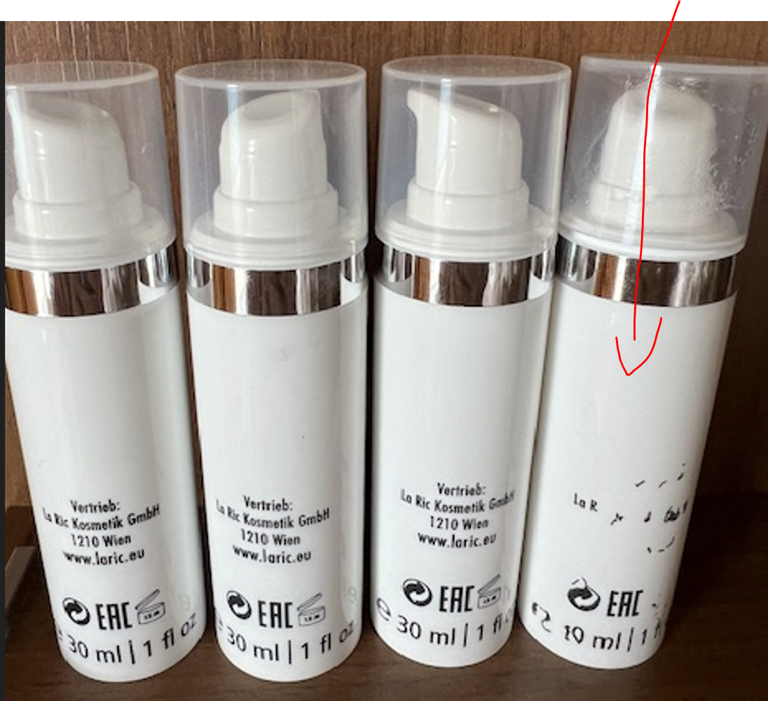 Bei der Benutzung, hat man dann zusätzlich die Beschriftung der Flasche auf der Hand Fläche, der Werbe Druck hält nicht lange, dann sind alle Flaschen am Ende weiss.