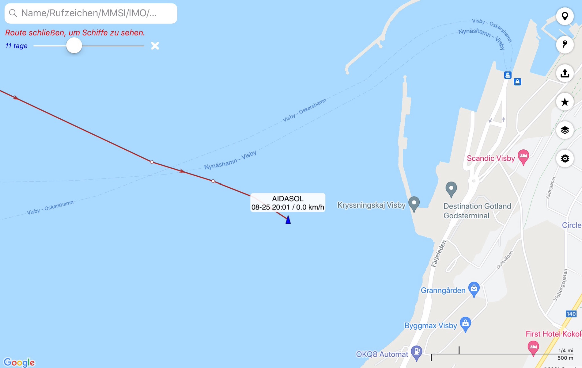 Sie war am Mittwoch jedenfalls in Korfu. Und danach war Split als nächster Hafen eingetragen.