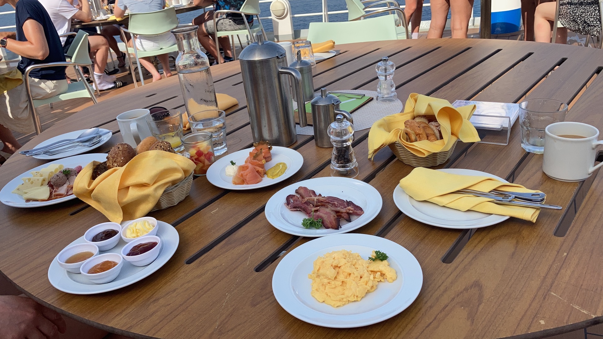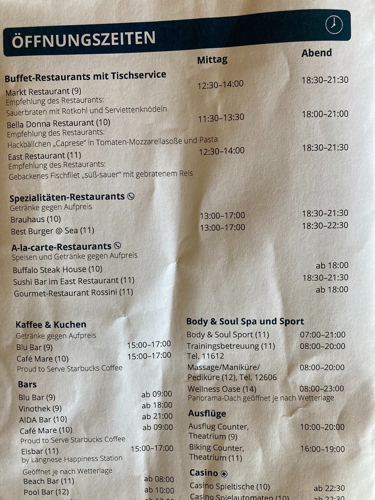 9.00 Kabinen verlassen und 11.00 dann spätestens das Schiff.