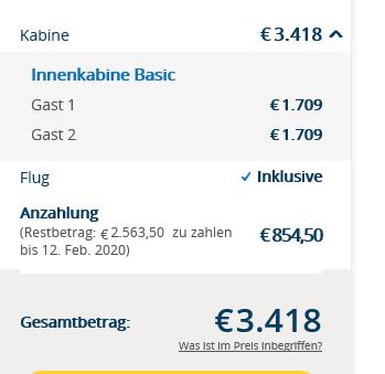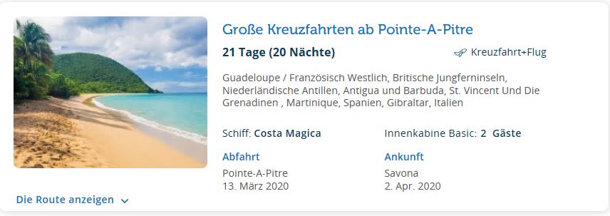 Es gibt aber ab und zu auch Just- Angebote, bei denen Schiff und Route gleich sind, jedoch um eine Woche verschoben.