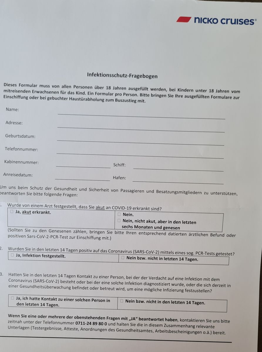 Nach dem Gesundheitsbogen fragt beim Check in kein Mensch.