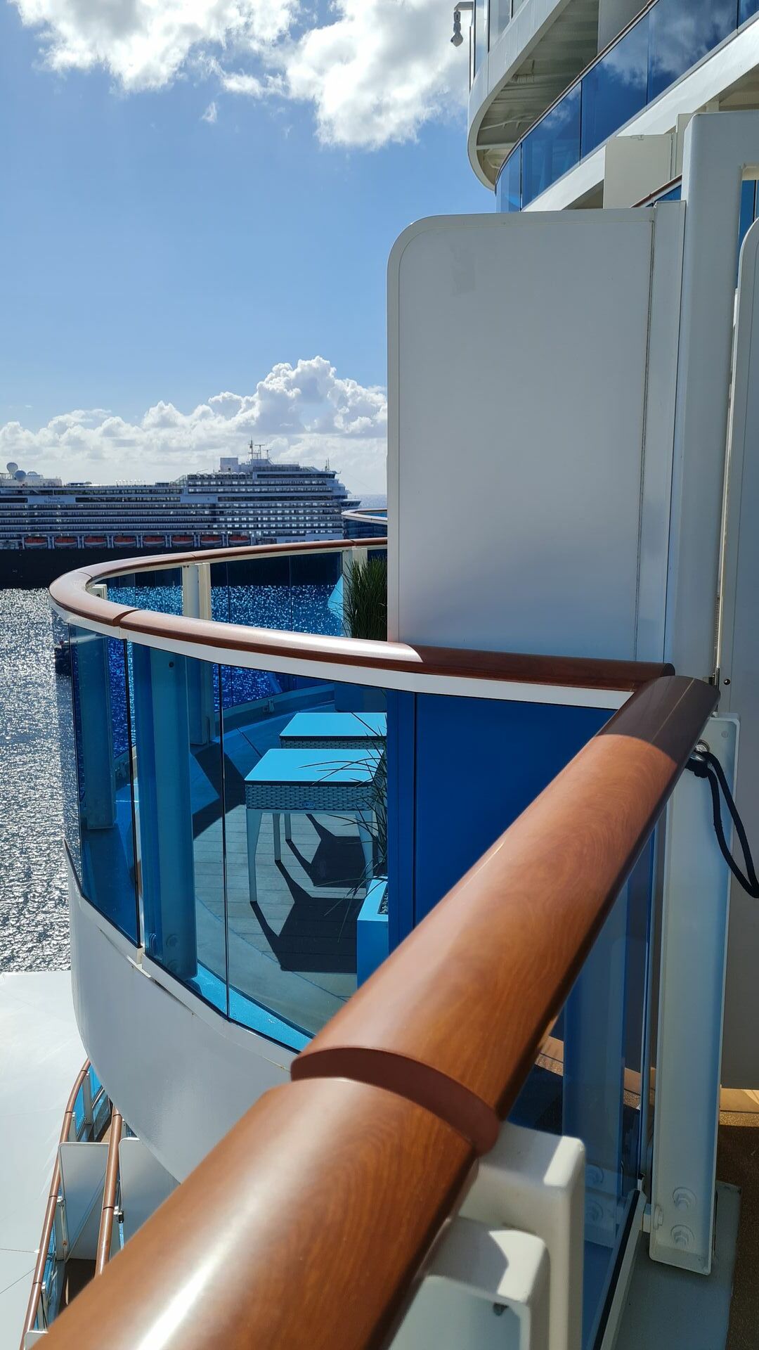 Veranda Balkon Kabine, direkt am Heck, neben der Suite,