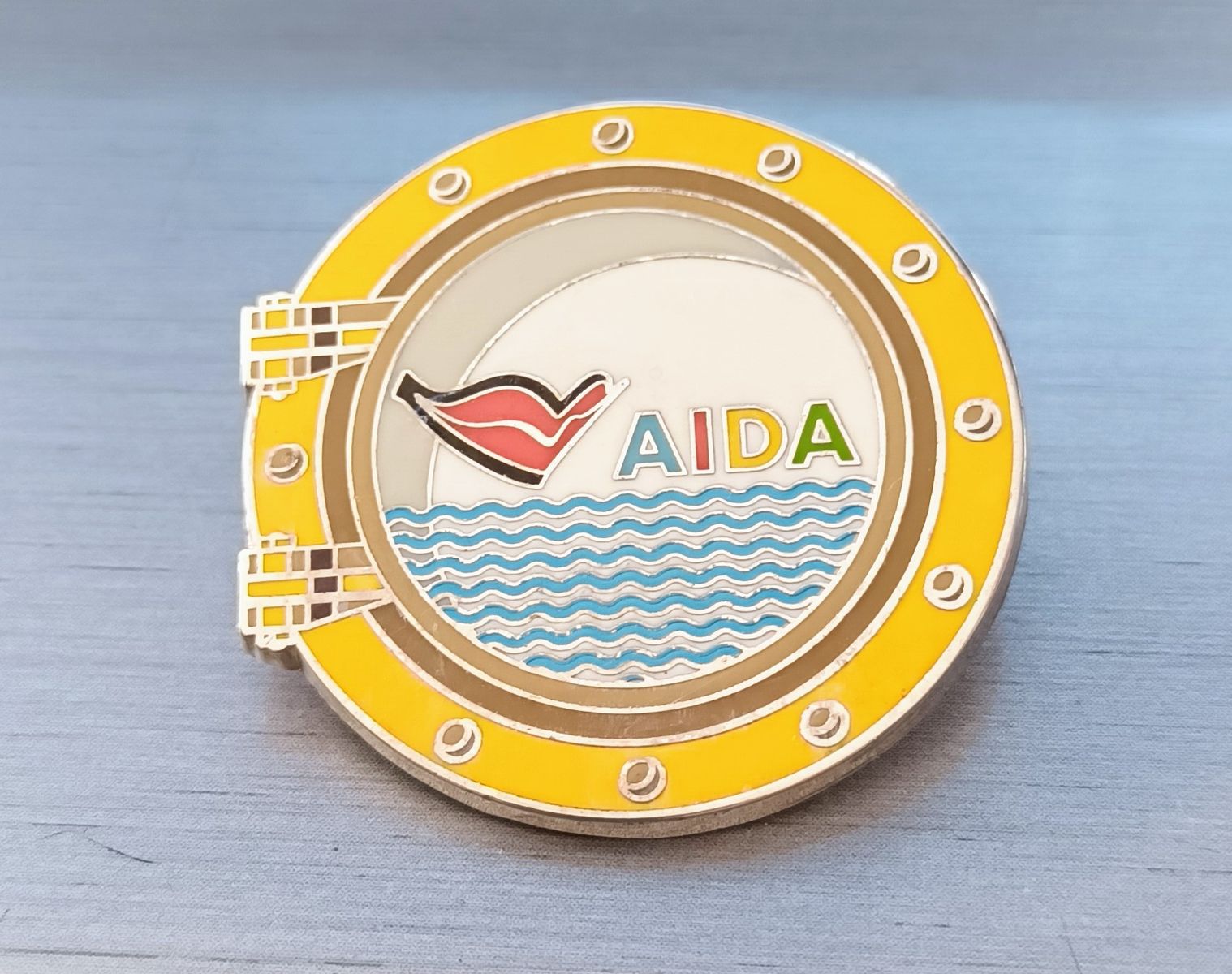 Vielleicht weiß jemand, was das für ein Aida-Anstecker ist? Wir haben diesen "unbeabsichtigt" von unserer letzten Kreuzfahrt mit nach Hause genommen. Ich habe schon im www versucht, Informationen darüber zu finden, leider erfolglos. Vielleicht kann hier jemand aufklären was das für ein Anstecker ist. (Dieser ist mit 35 mm Durchmesser wesentlich größer als so ein Jahrespin)