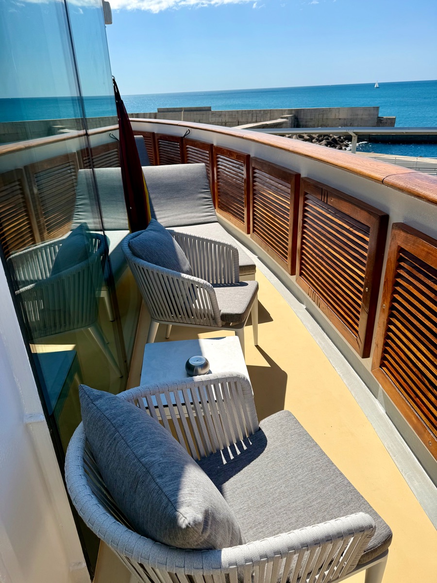 1. Die entsprechende gebuchte Kabinenkategorie und -lage (das wäre BA, direkt am Heck hintenraus) gibt es zwar auf der Bella, aber dieser Bereich ist Quarantäne-Bereich und damit geblockt.
