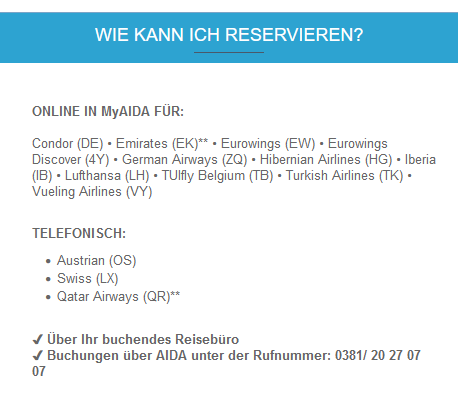 Auch das mit den Flügen bleibt weiterhin spannend. Wir haben das Flugpaket über Aida gebucht (ab Frankfurt). Da schaue ich auch immer, welche Rückflüge ihr bekommt.