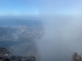 Aurafahrerinnen/Aurafahrer die in Kapstadt diese klare Aussicht auf den weltberühmten "Tafelberg" haben,sollten ohne große Verzögerungen mit dem Taxi zum "Tafelberg" fahren und einen faszinierenden Ausblick auf Kapstadt und den "Schlafenden Löwen" genießen