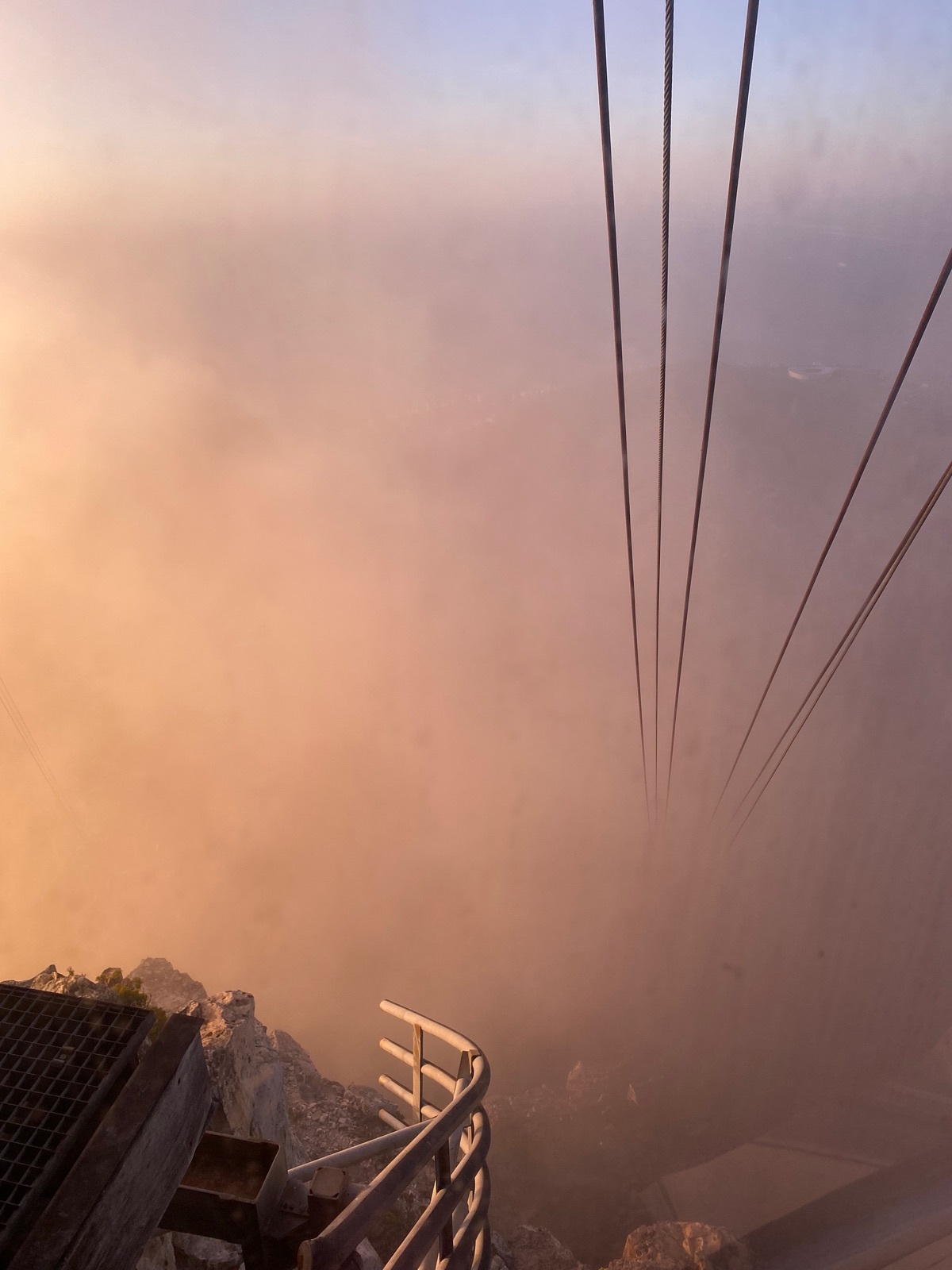Wir kamen mittwochs morgens in Kapstadt an. Da es noch sehr früh war, und wir das Zimmer noch nicht beziehen konnten, haben wir unser Gepäck abgestellt und sind direkt an der Waterfront spazieren gegangen. Gegen 13:00 Uhr konnte das Zimmer bezogen werden. Dort haben wir uns aufgrund des Nachtfluges erst einmal für2 Stunden ausgeruht. Nach einem späten Mittagessen, sind wir dann so gegen 16:00 Uhr mit einem Uber zum Tafelberg gefahren. Das Wetter war eigentlich gut, jedoch sagte man uns unten an der Kasse direkt dass es windig ist der Wind zunimmt. Für uns kein Problem. Wir wollten unbedingt hoch. Die Gondel war leer, oben auf dem Berg hatten wir einen Mix aus klarer Sicht und einer Menge Wolken, die sich aber durch den Wind immer schnell verzogen hat. Es war faszinierend. Bis 18:40 Uhr waren wir auf dem Tafelberg, danach sind wir mit dem Uber zum Hotel.