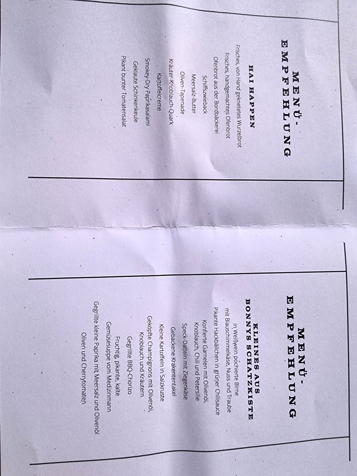 Die Events wie Rossini mal anders, Küchenparty oder die Piratenparty wurden/werden hier z. Z. erst ziemlich kurzfristig angekündigt, die Piratenparty z. B. am 21.12.24 für den 27.12. Man kann immer mal wieder ins Bordportal unter Reservierungen schauen, dort ist es etwas früher zu sehen.