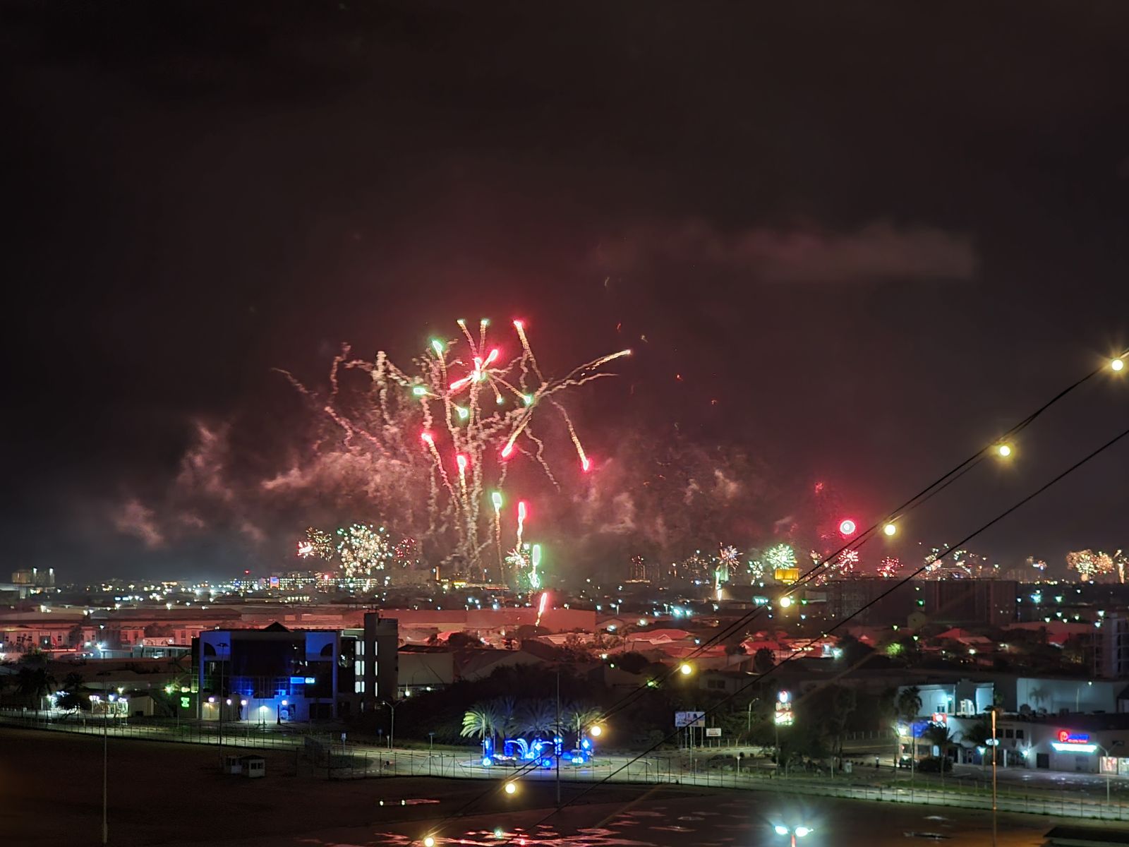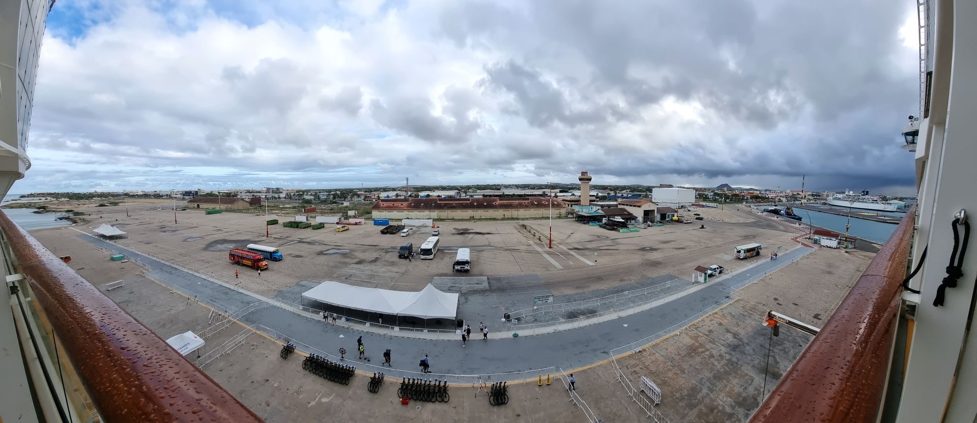 Nein, wir haben nicht gewechselt, der Pfeil war am 30.12. falsch eingezeichnet. Wir liegen genau wie am 31.12. angegeben. An den beiden anderen Plätzen lagen gestern die Beyond und Norwegian Jewel und heute die Volendam und Seaborn Ovation. Der Weg in den Ort ist lang,