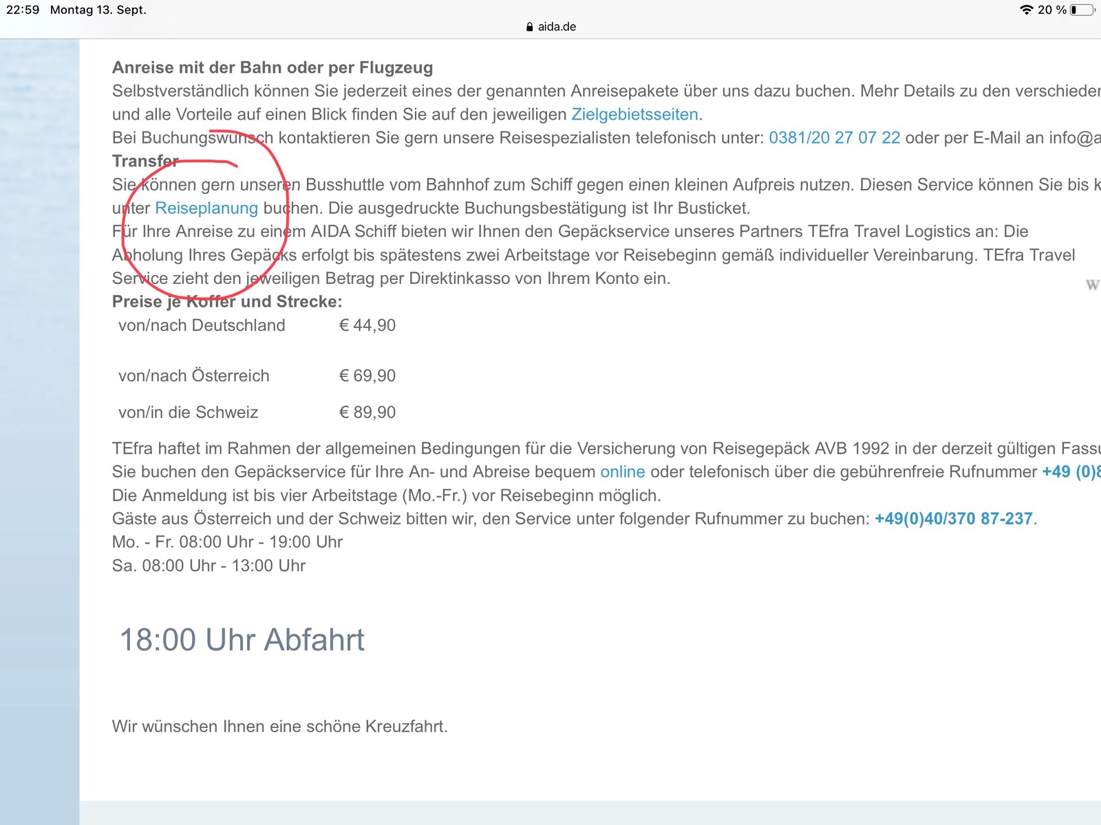 Da kommt im Text zur individuellen Anreise Blau unterlegt Reiseplanung