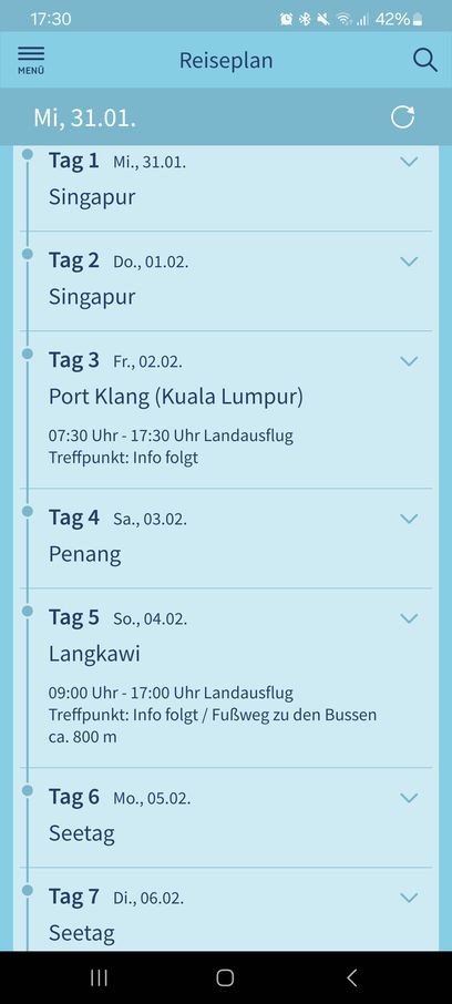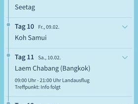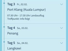 Ich habe in Singapur Eintrittskarten gekauft, die leider aufgrund der früheren Abfahrtszeit verlegt werden mussten. Für Bangkok einen privaten Transfer. Für Penang einen Halbtagesausflug und für Koh Samui einen Bootsausflug. Die letzten beiden Gott sei Dank über Getyourguide. Da ist umbuchen problemlos.