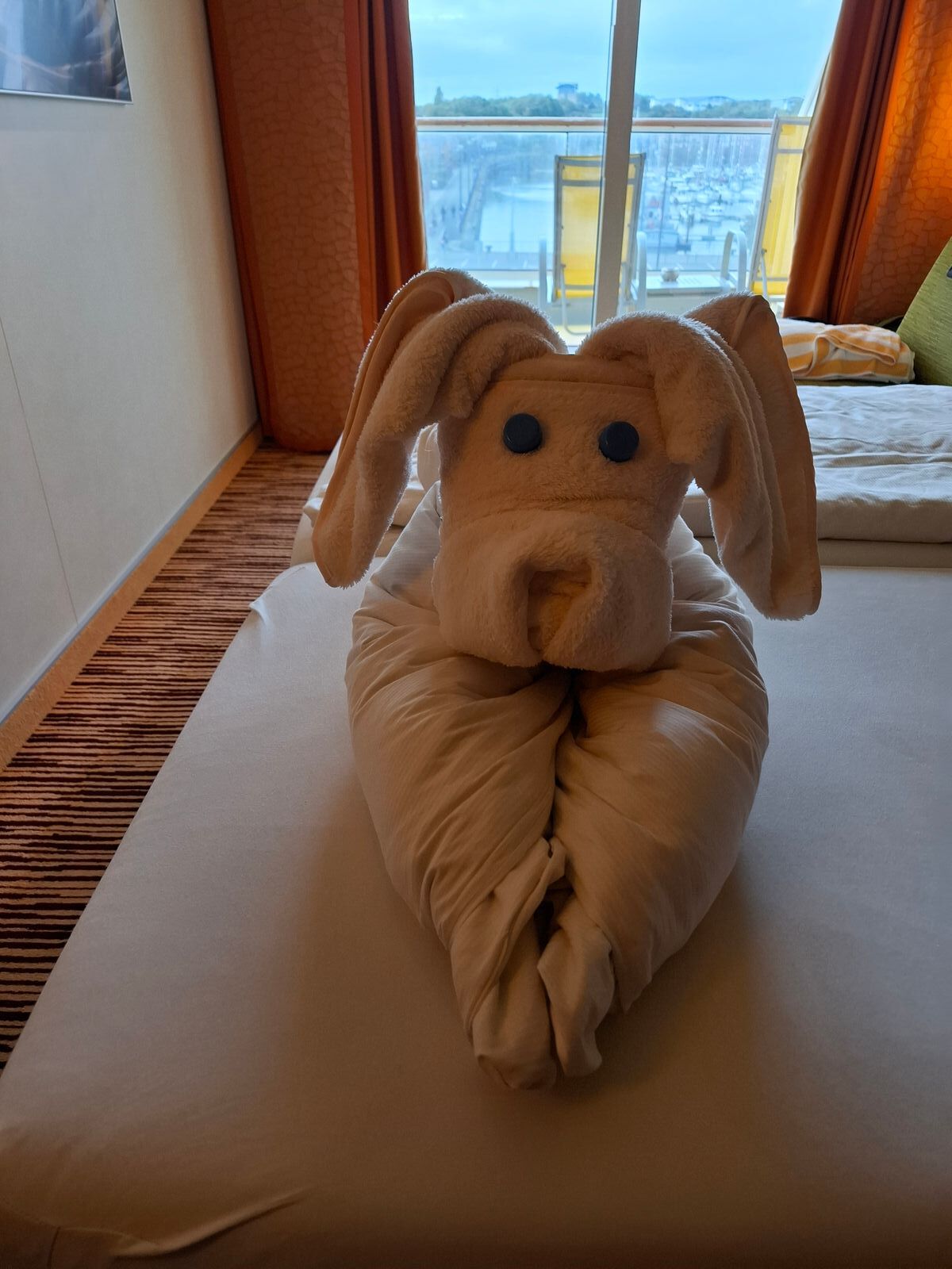 Unsere Kabine war auch bereits bezugsfertig. Jetzt müssen nur noch die Koffer kommen, ausgepackt werden und die SNRÜ gemacht werden - dann ist das Pflichtprogramm für die nächsten 20 Tage erledigt...![]()