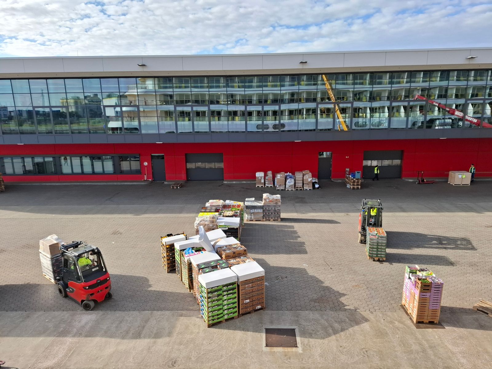 Auf gutes gesundes Essen (frisches Obst und Gemüse) müssen wir auf jeden Fall nicht verzichten - wird z.Zt. vor unserem Balkon verladen.