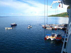 Anbei ein Foto, der einheimischen Tenderboote, nur mal so, dass Ihr eine Idee habt, was Euch erwartet.