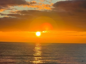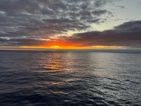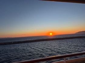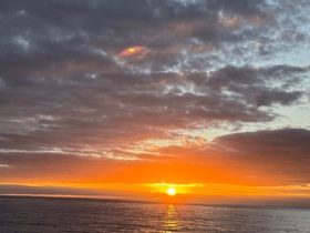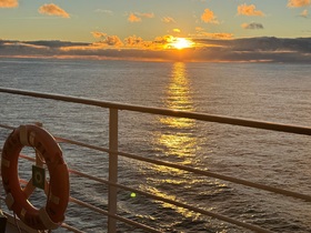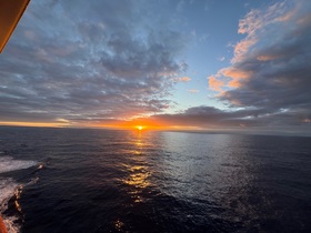 Das Schiff schaukelt lediglich ein ganz klein wenig, wohl aber nur, damit wir überhaupt bemerken, dass wir uns auf einer Seereise befinden.Den Sonnenaufgang am heutigen Morgen haben wir vom Außenbereich des Deck 13 wunderbar miterleben und fotografisch festhalten können.