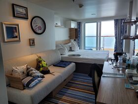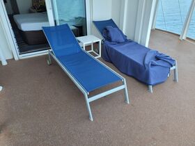 Während unserer letzten Reise mit der MS 3 hatten wir diese wirklich tolle Premium-Veranda-Kabine. Nachdem wir bei unserer letzten Reise als gesamte Familie (sechs Leute) die Diamanten Suite hatten, waren wir von dem riesigen Balkon und der Lage sehr angetan, so dass wir uns diesmal dachten, wir hätten auf jeden Fall gern wieder einen etwas größeren Balkon mit ähnlicher Lage um es uns dort gemütlich zu machen (wir hatten insgesamt 5 Seetage, davon 3 am Stück). Wir waren sehr zufrieden mit der Kabine. Wir waren zu zweit, so dass die Größe völlig ausreichend war. Da der Balkon ums Eck geht, hat man mehr Möglichkeiten was Sonnen- und Schattenplätze angeht und die Hängematte ist auf jeden Fall ein großer Pluspunkt bei uns. Auch dass man sowohl zwei Liegen als auch zwei Stühle mit verstellbarer Rückenlehne sowie einen Fußhocker und ein Beistelltischen hat, bietet viele Möglichkeiten. Wir fanden die Lage sehr angenehm und ruhig. Die etwas weiteren Laufwege zum Treppenhaus/Aufzug haben uns nicht gestört (schaden bei einer Kreuzfahrt ja auch nicht ;-)). Die Kabinentür selbst liegt hinter einer zusätzlichen Türe, die nur zu dieser und einer weiteren Kabine führt.
