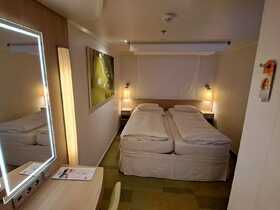 Innenkabine - bevorzugte Lage, mit Doppelbett und bekannter Ausstattung, nicht weit vom vorderen Treppenhaus entfernt. Ruhige Kabine - würden wir wieder nehmen! 👍🏻