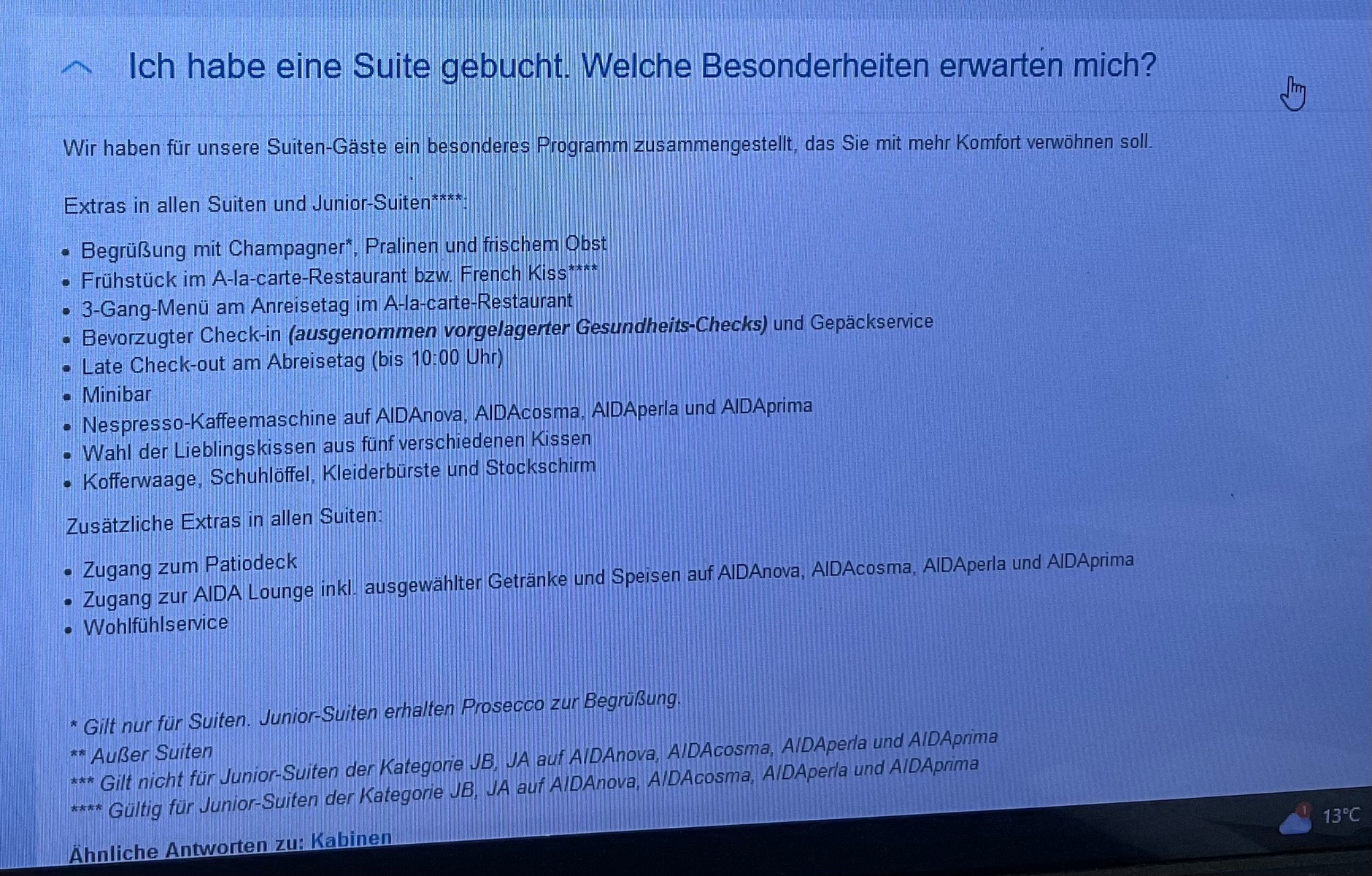 Ich kann leider nichts zu Costa sagen, bei Aida ist das damit durch und eingebucht.